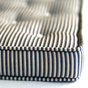 A firm mattress with piped edges, rows of buttoning and a striped cotton cover. Made-to-measure for single, double or childrens' beds.